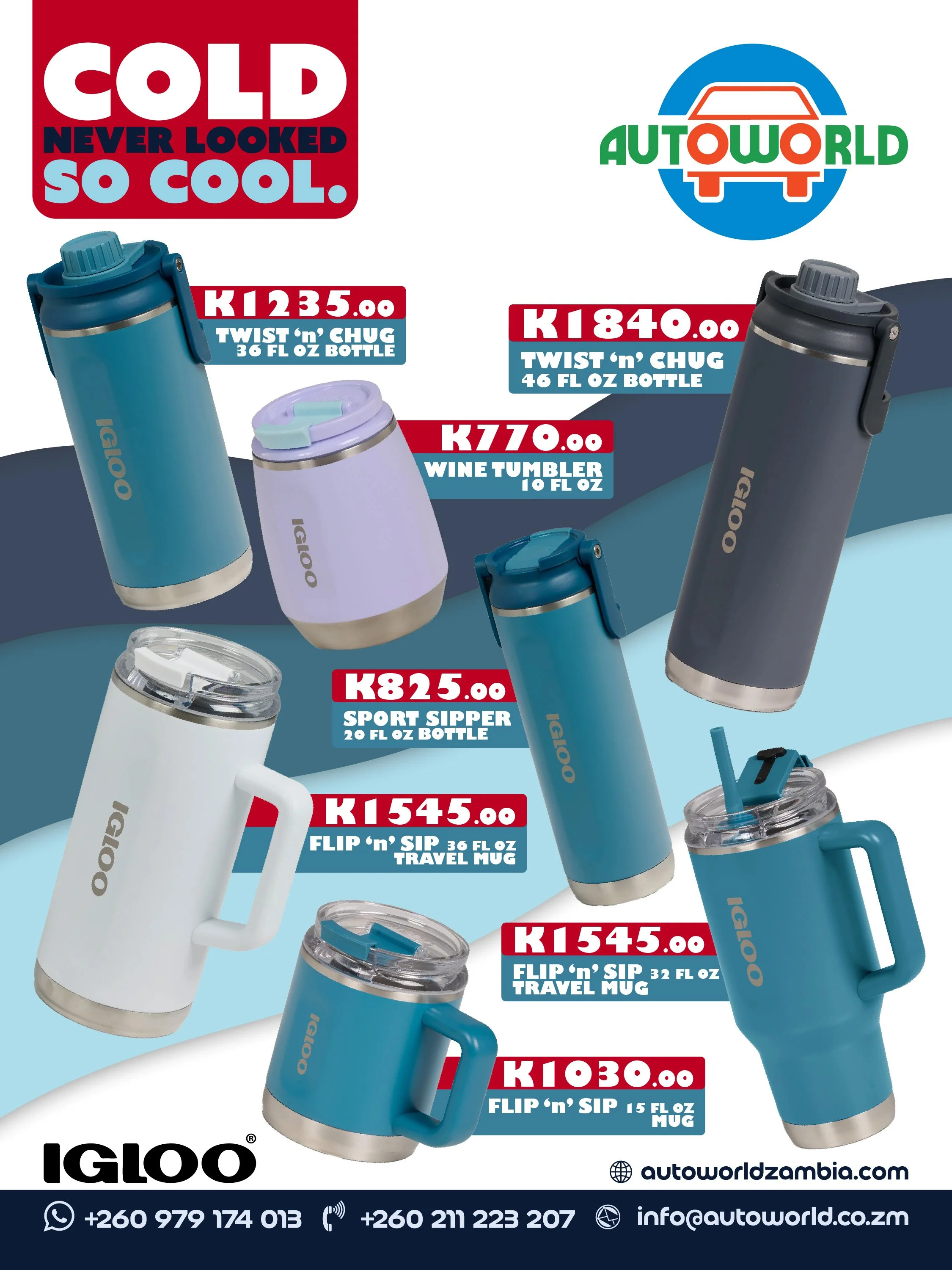 From sleek sippers to rugged chillers, we’ve got the gear to keep your cool on lock. Autoworld Zambia is serving up a fresh drop of icy essentials, bold looks, serious function, and cooler vibes than ever. Ready to upgrade your chill game? WhatsApp us for more information on +260 979 174 013.