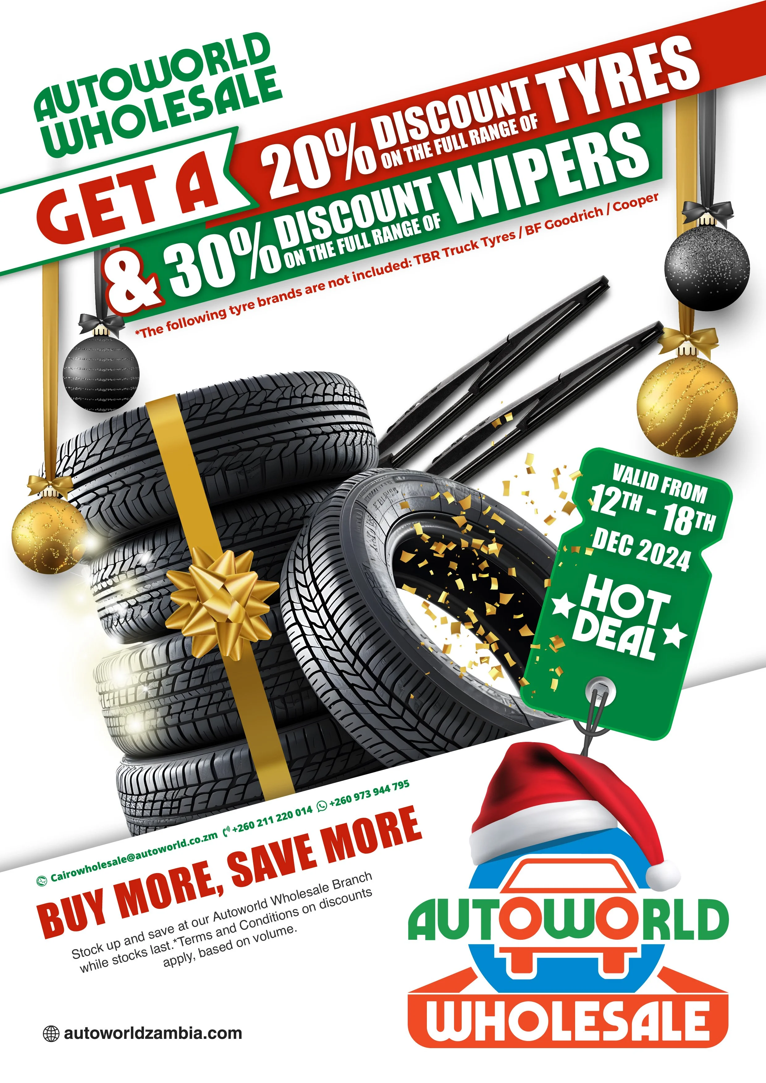 Jingle all the way to savings at Autoworld Wholesale! This festive season, save big when you buy in bulk! Enjoy a 20% discount on our entire range of tyres and an even merrier 30% off wipers. But don't wait—this special offer is only valid from December 12th to 18th, based on your purchasing volume.