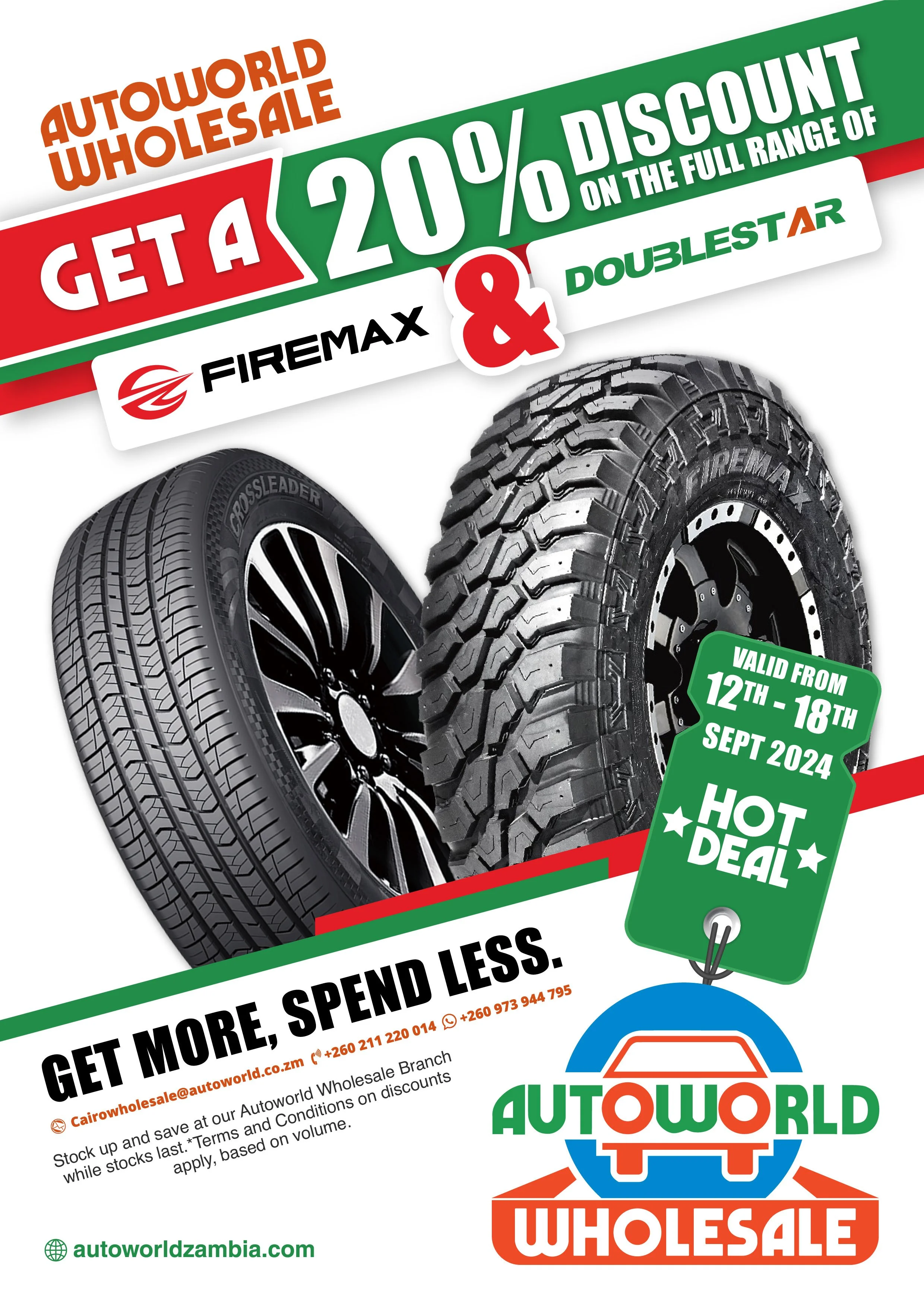 Spring Savings Alert! Enjoy a 20% discount on all Double Star and Firemax tyres when you buy in bulk. Visit our Cairo Road Wholesale branch from September 12th to 18th and take advantage of this limited-time offer. Shop smarter, save better!