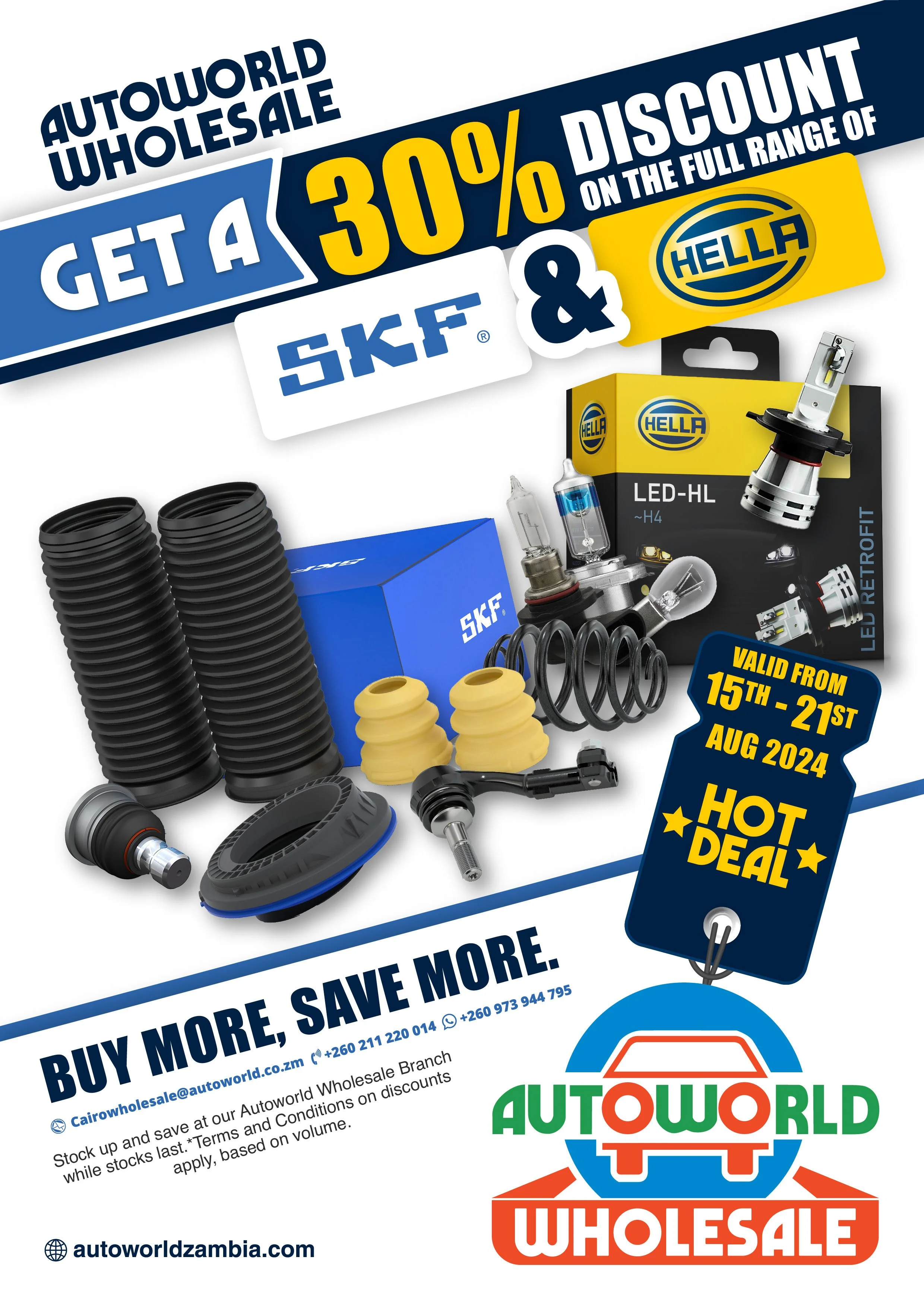 Unlock Unbelievable Savings This August! Get ready for a one-time, jaw-dropping 30% discount on the entire SKF and Hella range at Autoworld Wholesale! From August 15th to 21st, your purchasing volume determines your savings.
